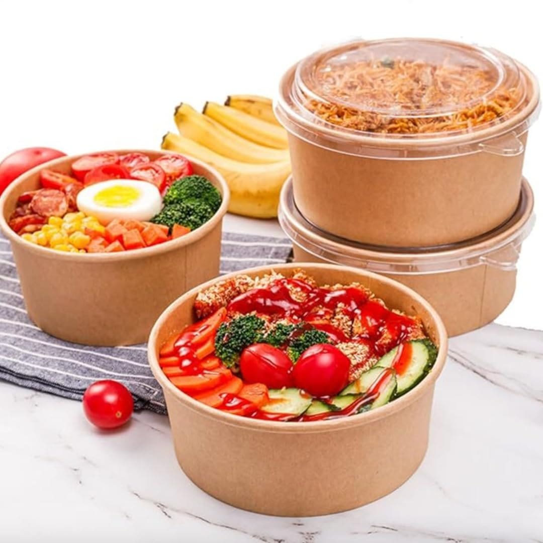 PET salad bowls are premium-quality, transparent containers designed to showcase fresh salads, fruits, and cold dishes. Made from high-clarity food-grade PET material, they offer durability and leak resistance, maintaining freshness during delivery or display. Ideal for cafes, supermarkets, and cloud kitchens, these bowls come with secure-fit lids for spill prevention. Lightweight yet strong, they provide excellent visibility for product presentation while supporting recyclable packaging standards. Available in multiple sizes to suit various portion requirements.